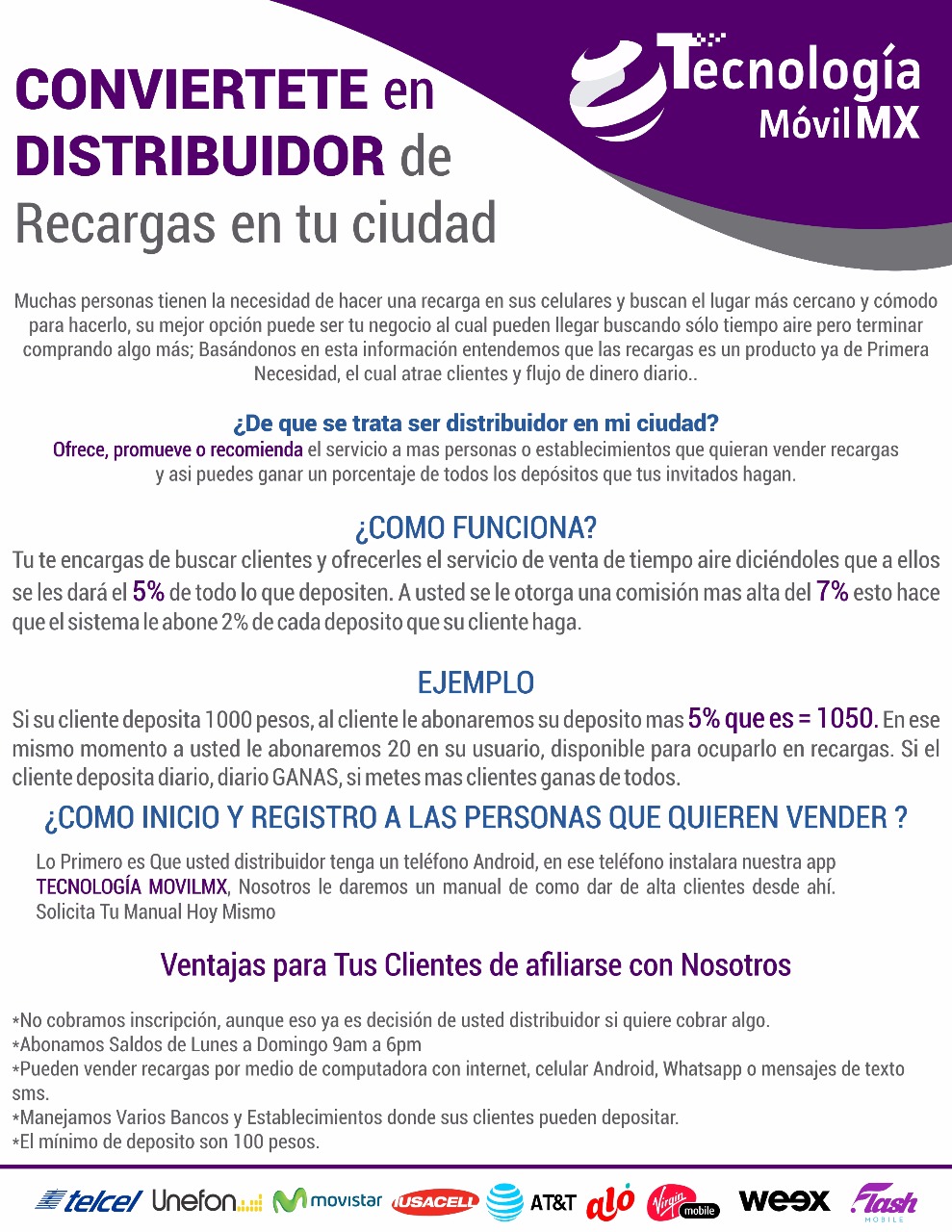 Ofrece, promueve, recomienda el servicio a mas personas o establecimientos que quieran vender recargas y asi puedes ganar desde $5 pesos hasta $1000 al dia. Entre mas clientes invites mas ganas.